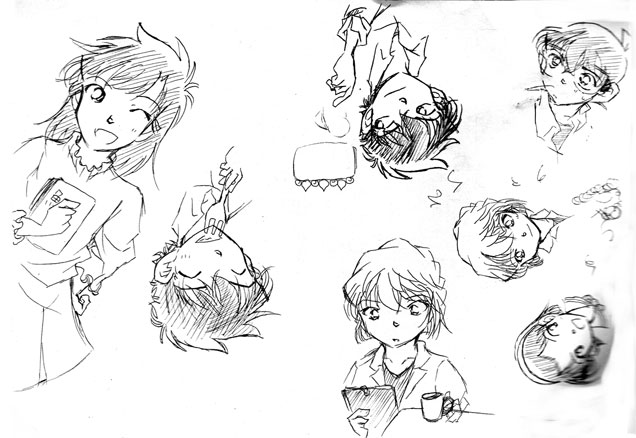 ……何か、直前に描いたコナンと平次に