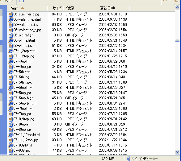 こんな感じで、画像ファイルとhtmlファイルが素晴らしく混在し、