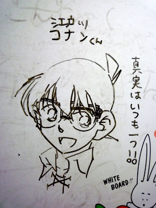 2週間位前に、冷蔵庫に張ってるホワイトボードに落書きしたコナン。