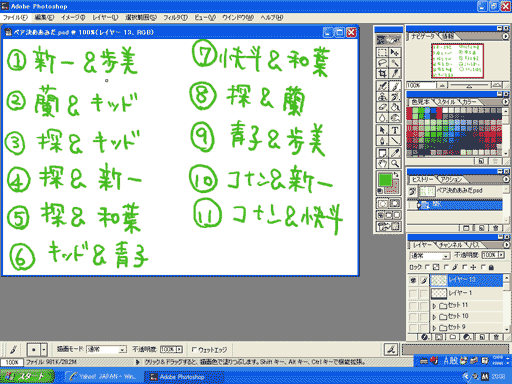 フォトショにメモした11組のペアを母親に見せてみた。