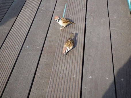 **スズメとの戯れ**