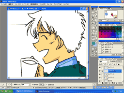 映画パンフ辺りから、影の付け方を確認するものの、あまり上手く塗れず。