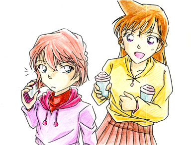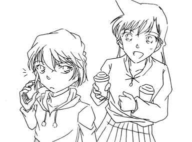 飲み物持って哀の元へやってくる蘭姉ちゃんの図